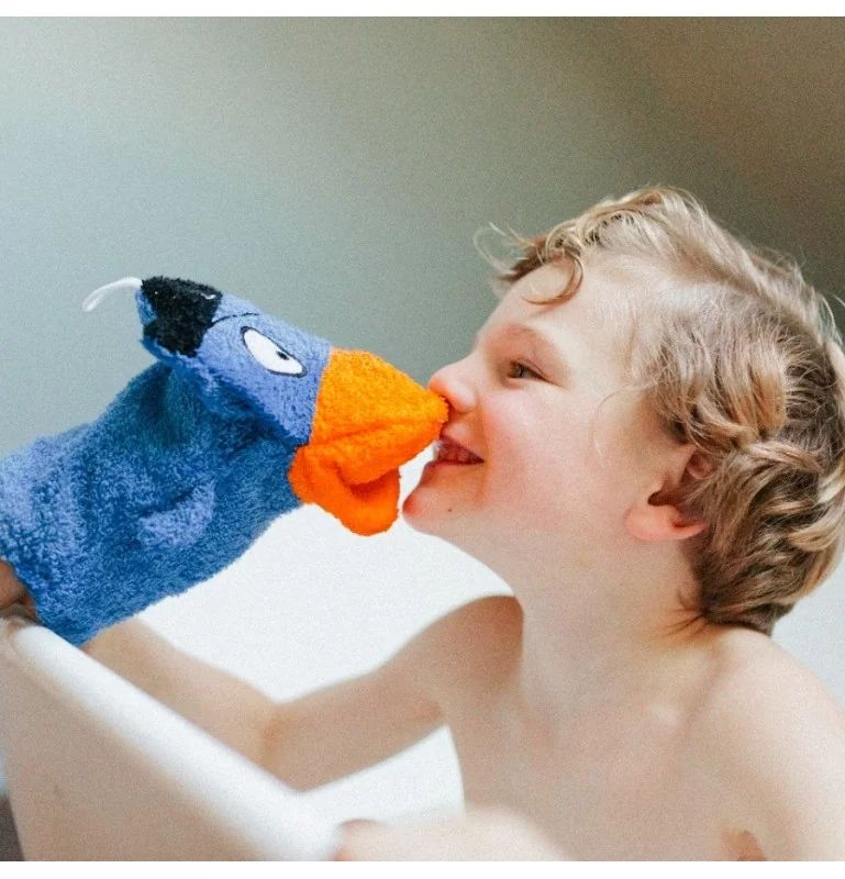 Un gant de toilette en forme d'oiseau pirate pour rendre l'heure du bain encore plus amusante !