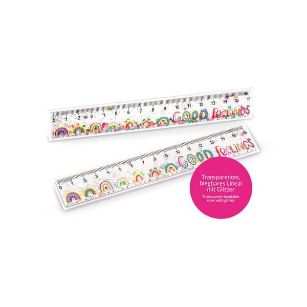 Petite mais pratique pour découvrir le monde des mesures, cette jolie règle souple renferme une multitude de paillettes multicolores
