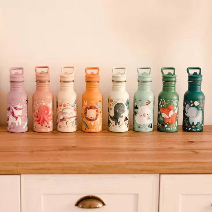 Cette jolie gourde en acier inoxydable avec paille de la marque Sassi trouvera facilement sa place dans le cartable de votre enfant. Elle conservera son contenu au chaud comme au froid.