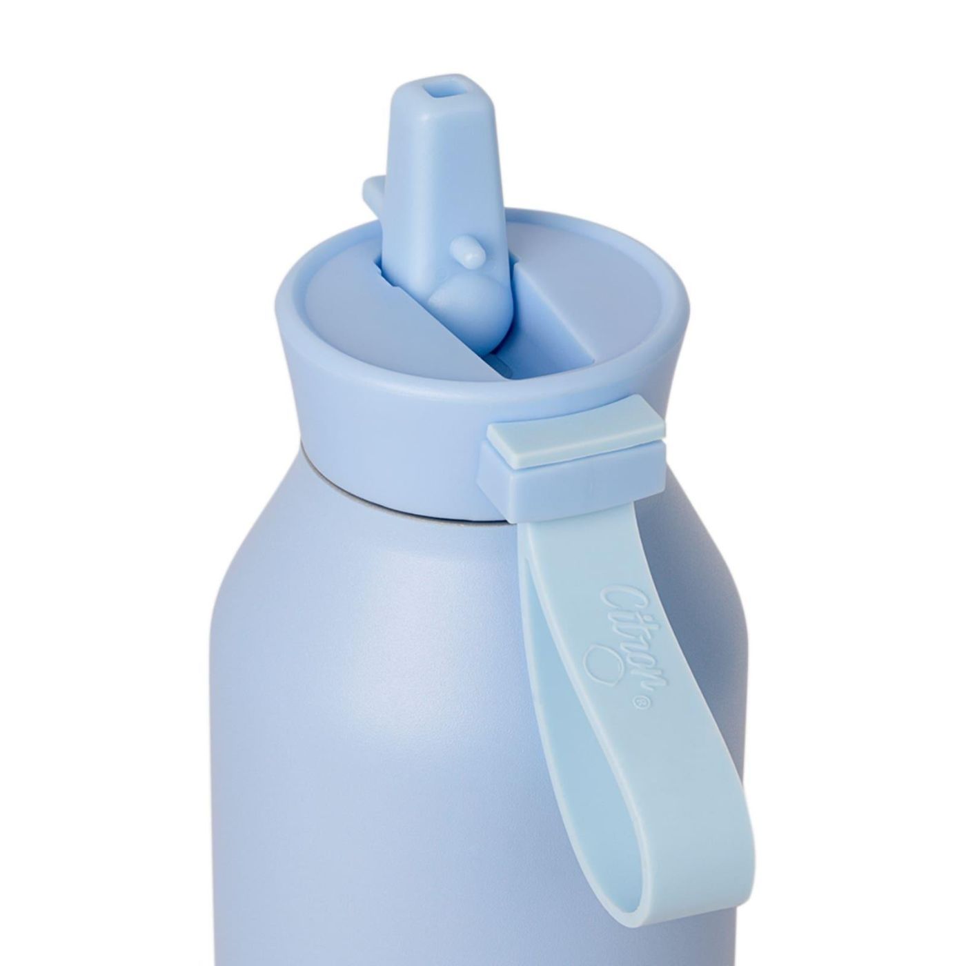 La gourde contient également une paille supplémentaire et un goupillon et est munie d'une poignée pour qu'elle puisse être facilement attachée à un sac ou autre, ainsi que d'un pare-chocs en silicone qui maintient la bouteille stable et la protège des chocs.