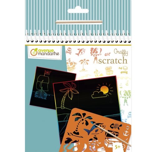 Découvrez ce carnet à spirales Avenue Mandarine de 24 cartes à gratter avec des décors pré-imprimés sur le thème des pirates.