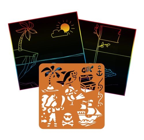 Grâce à la planche de pochoirs et au stylet en bois inclus, chacun pourra laisser libre cours à son imagination !