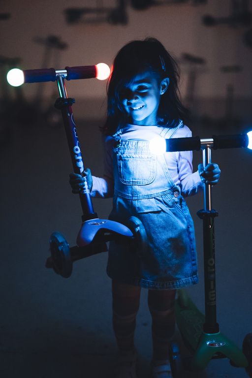 Avec ce guidon, vous pouvez transformer votre trottinette Mini Micro Deluxe en Mini Magic. Les poignées s'allument en 5 couleurs lorsque vous trottinez !