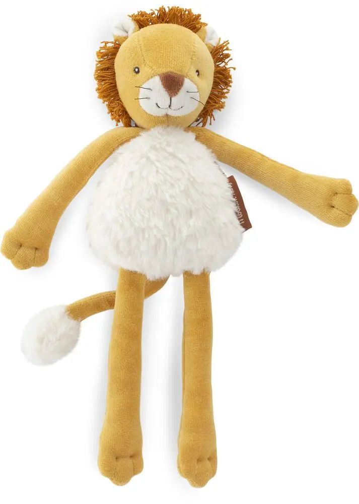 Découvrez le lion hochet de la collection La forêt Mawa de Moulin Roty, un jouet en tissu pour éveiller et stimuler les sens de bébé dès sa naissance.