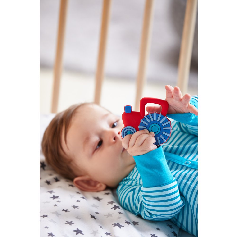 Ce petit hochet en silicone est idéal pour détendre les muscles de la mâchoire et aider à la dentition des petits loups.
