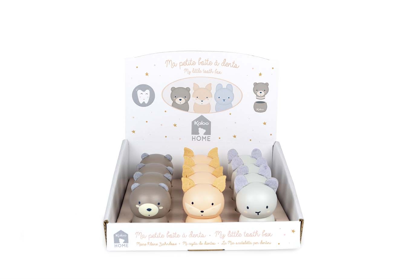 Cette jolie boite à dent en bois massif est disponible en forme d'ours, de renard ou de lapin avec de petites oreilles en feutrine.