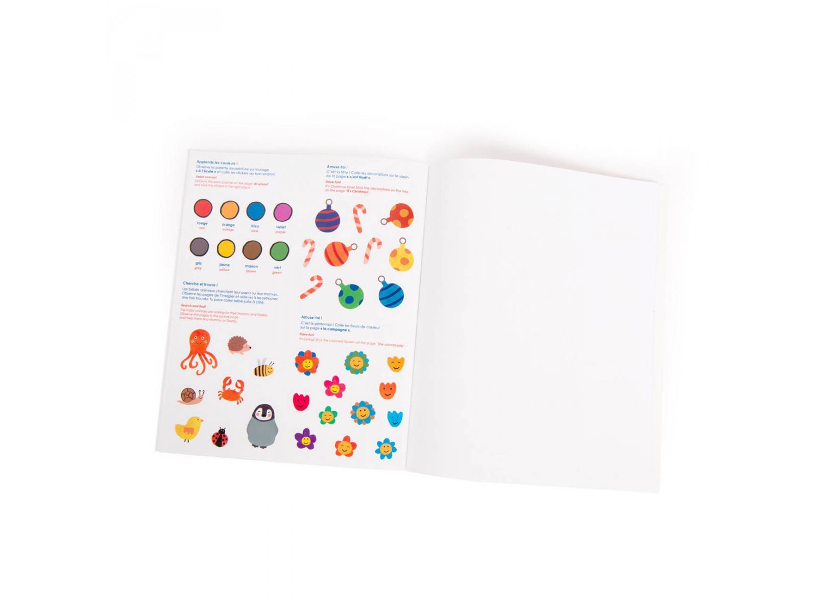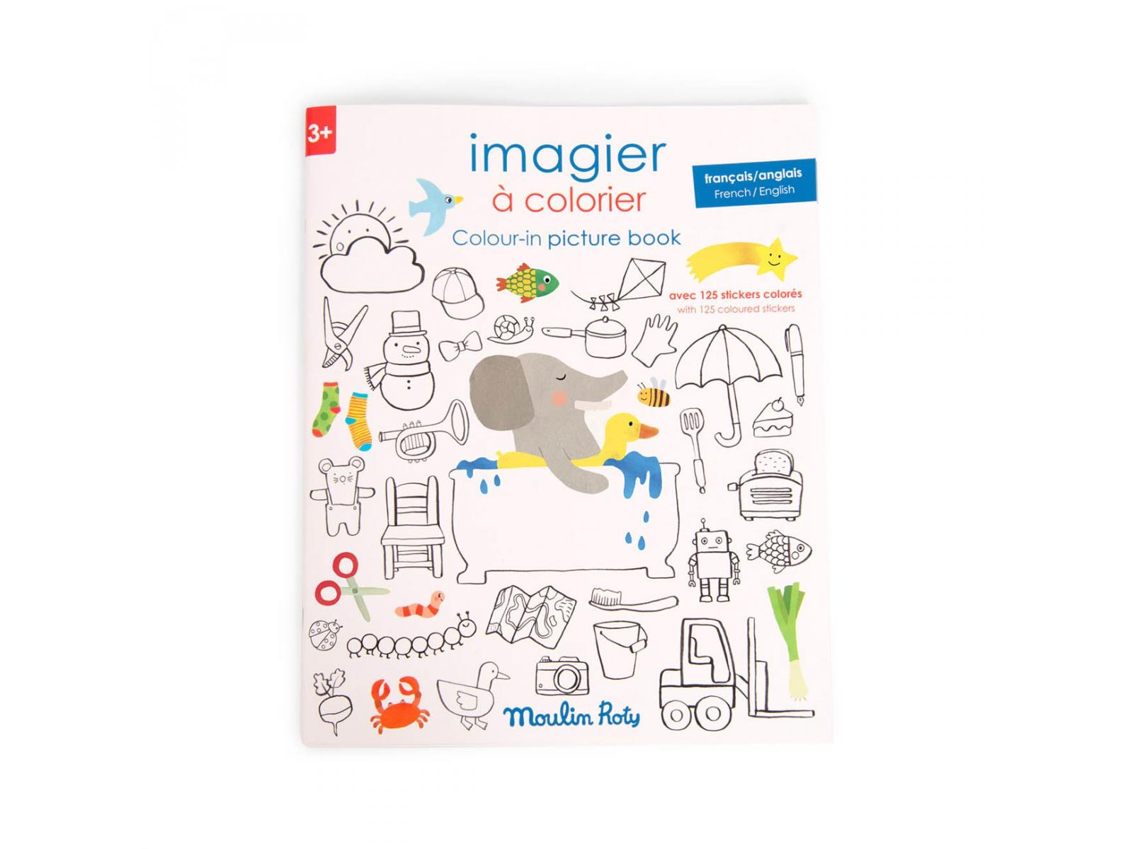 Un imagier à colorier en français/anglais pour apprendre les mots du quotidien en s'amusant. Il comprend 28 pages de coloriage et des activités à réaliser avec ses 125 stickers aux couleurs denses de la collection Les Popipop de Moulin Roty !