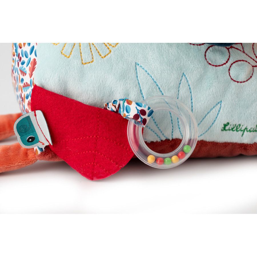 Au programme : 7 activités disponibles de part et d'autre de la peluche, pour de longues heures de jeu et d'éveil sensoriel. Et si on commençait par pincer le nez de Jack pour faire pouet ?