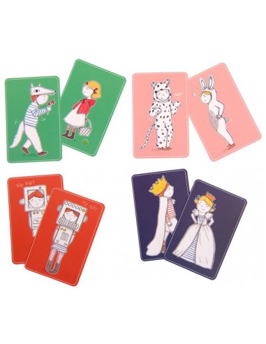 Dans le jeu de cartes Mistrigri, toutes les cartes forment une paire : le roi avec la reine, le loup avec le petit chaperon rouge... mais gare au Mistigri avec les petits coquins chien et chat. Contrairement à la version classique, le gagnant est, cette fois-ci, le joueur qui finit la partie avec la carte Mistigri!