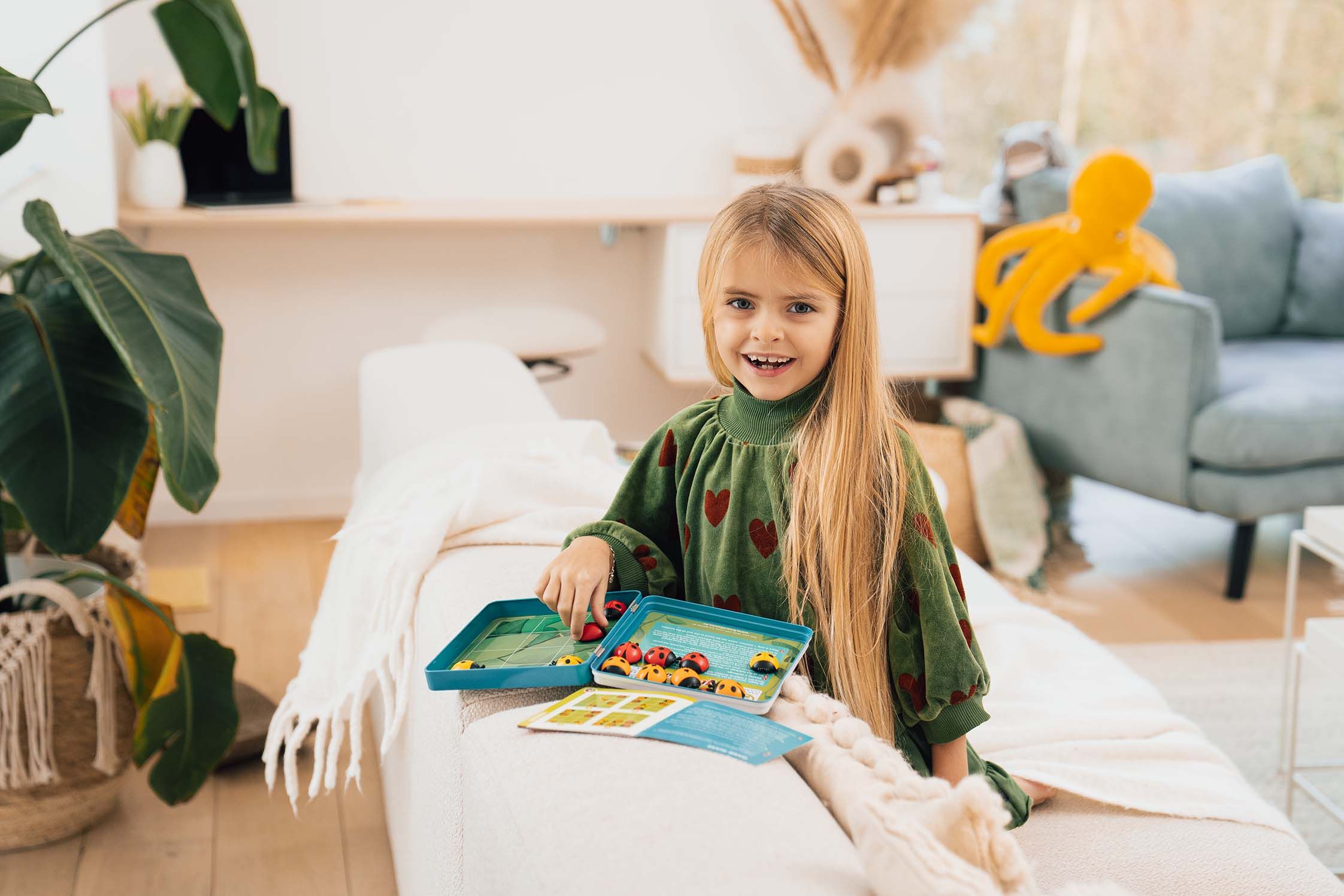 Coccinelles Demoiselles est un jeu magnétique de déduction de chez SmartGames dans lequel vous devrez trouver où poser vos coccinelles sur les feuilles de l'arbre. L'ordre prescrit tient compte de la couleur des trois familles et des valeurs numériques de chaque coccinelle représentées par le nombre de points sur leur dos. Chaque coccinelle doit trouver sa place sur les feuilles…