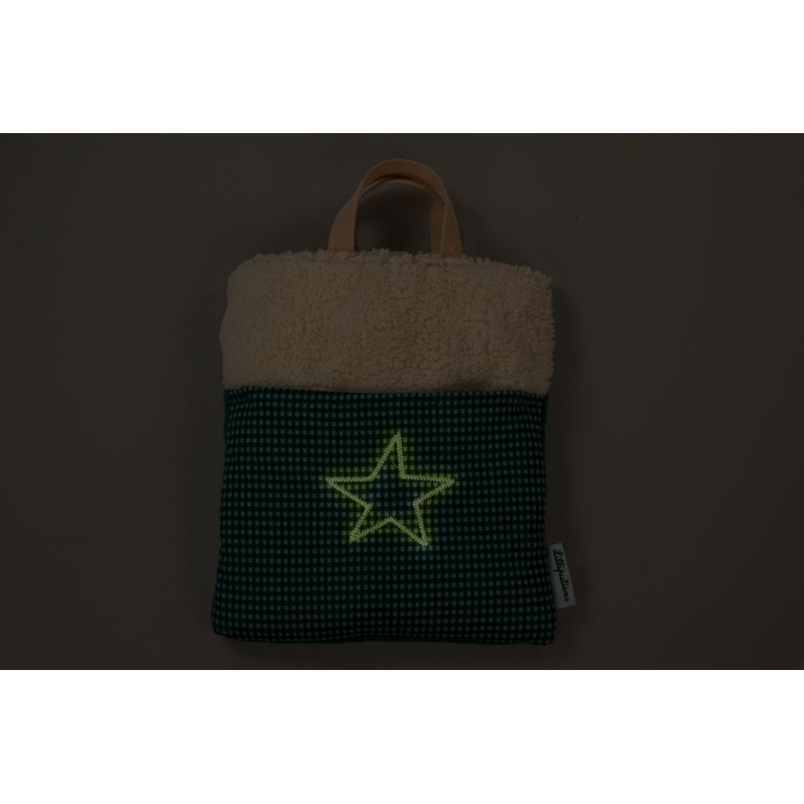 Il va sur le petit pot, met son lange, enfile son pyjama et s'installe ensuite confortablement avec son doudou dans le petit lit douillet. Après la petite histoire du soir, il éteint la lampe et ferme ses petits yeux. L'étoile phosphorescente installée sur son petit lit fait office de veilleuse réconfortante.