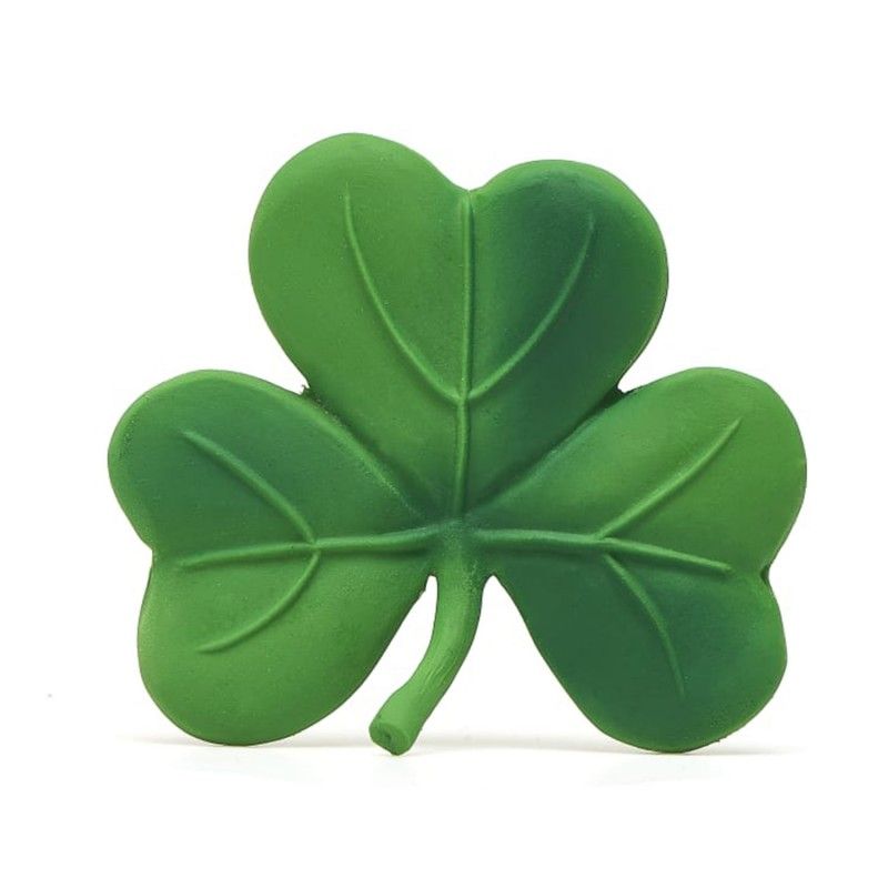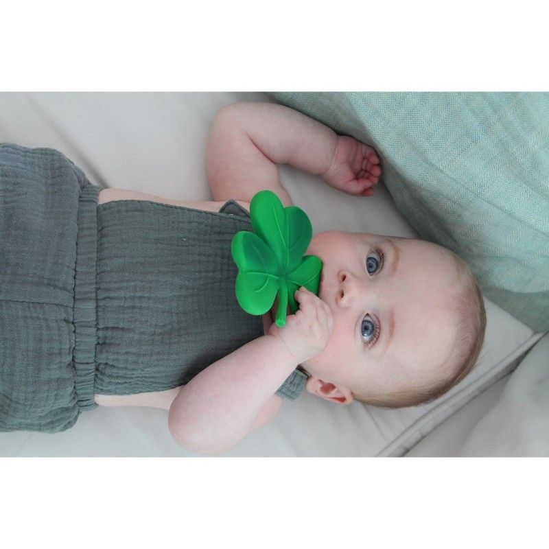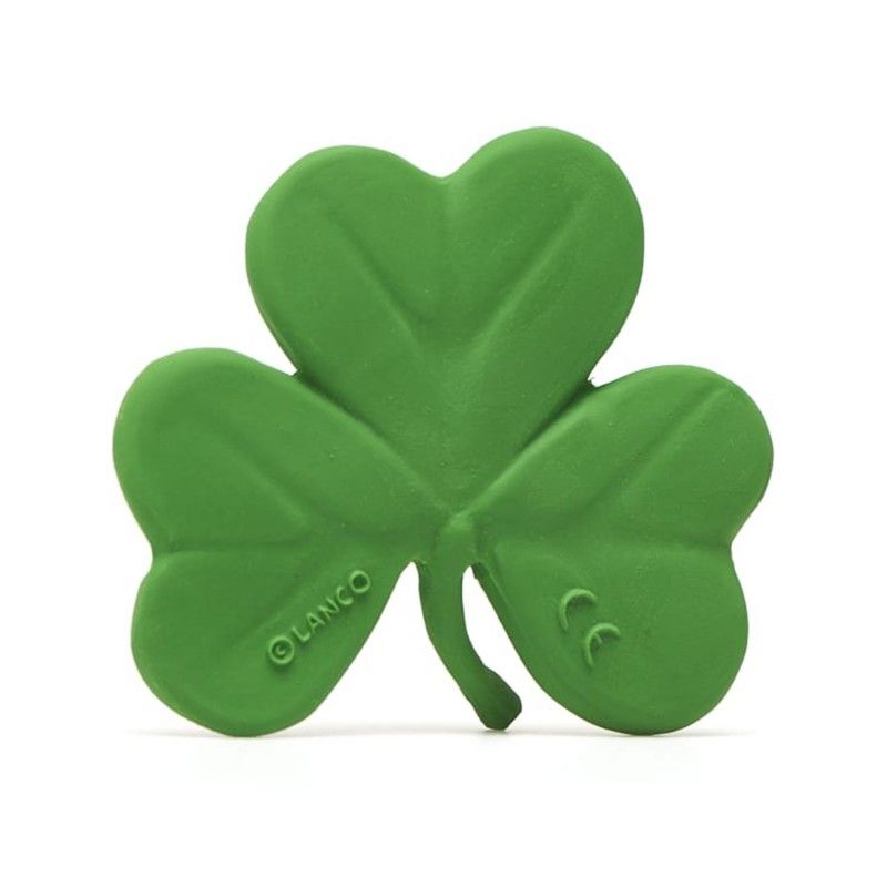 Un jouet en caoutchouc 100% naturel en forme de trèfle pour soulager les poussées dentaires et apaiser les gencives douloureuses.