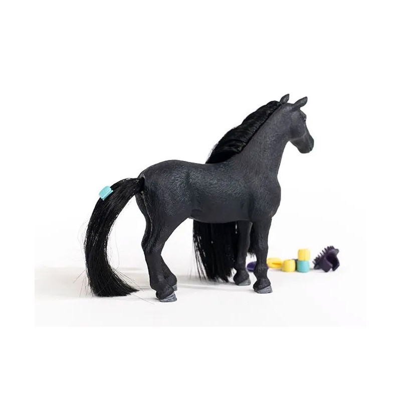 Voici la Jument Criollo Definitivo de notre nouvelle collection schleich® HORSE CLUB Sofia's Beauties, un cheval à la crinière et la queue coiffables. Ses perles et ses pinces sont autant d'îlots de couleur dans sa chevelure noire de jais.