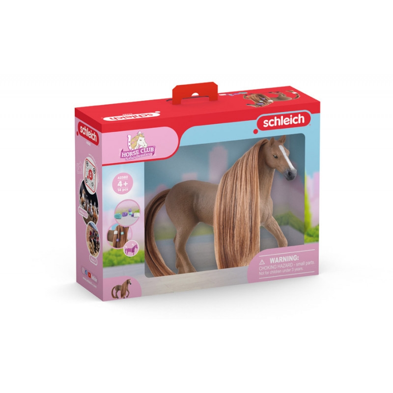 Contenu : 1 Jument Pur-Sang Anglais avec crinière et queue qui peuvent être peignées, 1 lot de pinces à crins, 1 lot de perles à crins, 1 brosse.