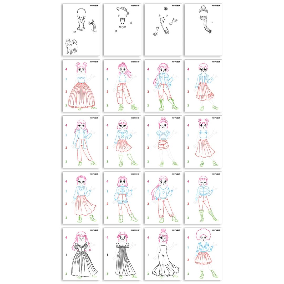 Avec la tablette lumineuse KIDYDRAW PRO FASHION, les enfants deviennent de vrais stylistes en herbe. Grâce à un ingénieux système de décalques, ils associent silhouettes, tenues, accessoires et motifs à l’infini – plus de 1000 combinaisons possibles, comme dans un véritable atelier de mode.