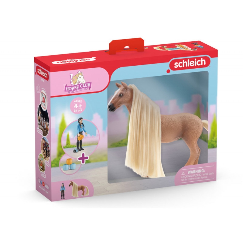 Le kit de démarrage Kim & Caramelo, qui fait partie de la nouvelle collection Sophia's Beauties, comprend un magnifique cheval Criollo à la crinière coiffable et une figurine Kim articulée.