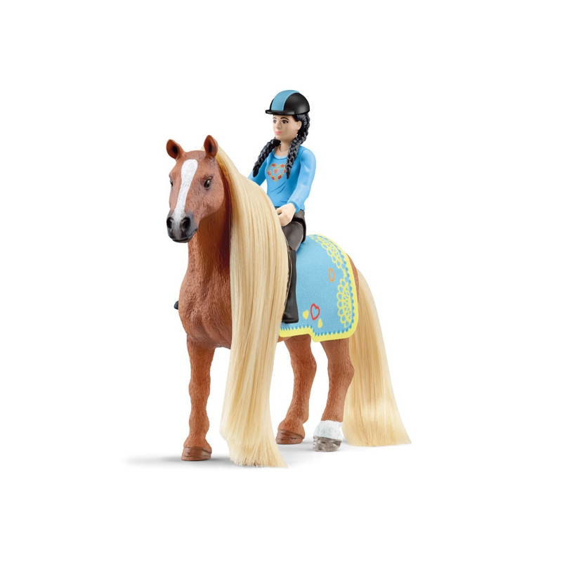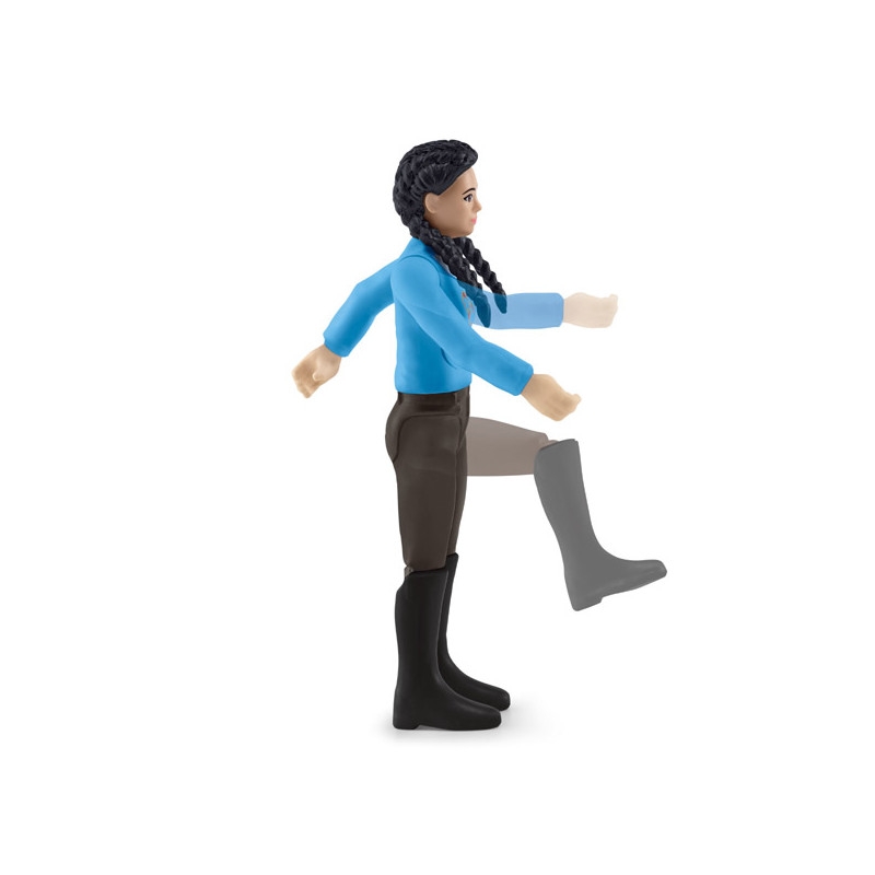 Contenu : 1 jument Criollo Definitivo avec crinière et queue qui peuvent être peignées, 1 figurine Kim entièrement articulée, 1 couverture pour cheval, 1 bombe, 1 lot de pinces à crins, 1 lot de perles à crins, 1 mèche à crins à clipser, 1 brosse