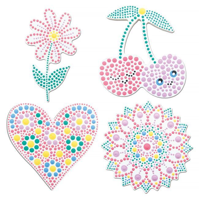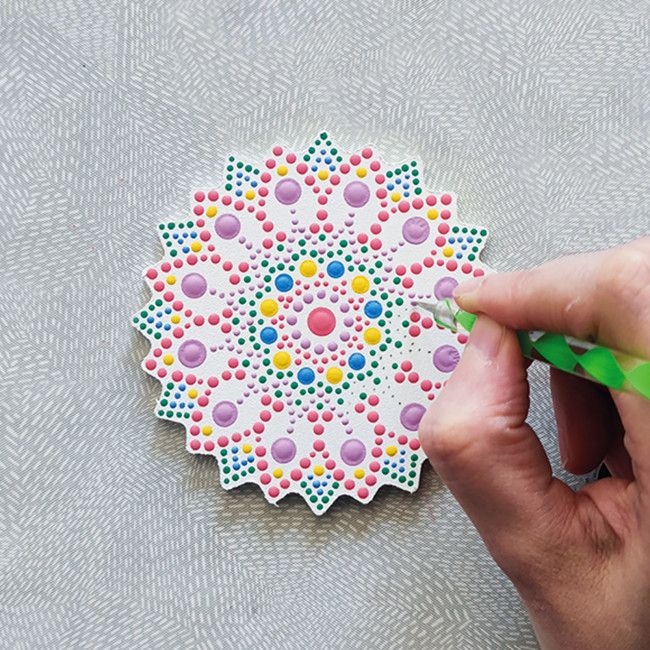 La technique du Dot Painting consiste à appliquer de la peinture en forme de points serrés à l'aide d'outils à embout plat ou double pointe de diamètres différents pour créer de magnifiques dessins plus ou moins complexes