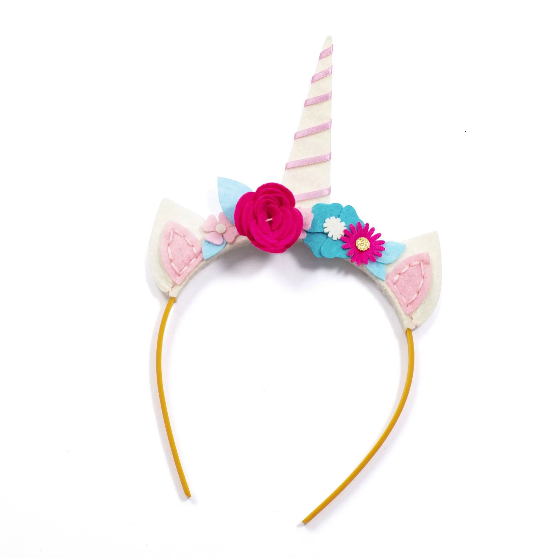 - Contenu : 1 serre-tête et une baguette magique, éléments de feutrine prédécoupés (pré-trouée ou adhésive), du fil, 1 clochette, des rubans, 1 aiguille plastique, et une notice.