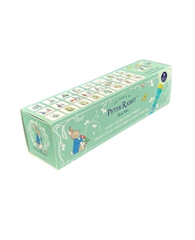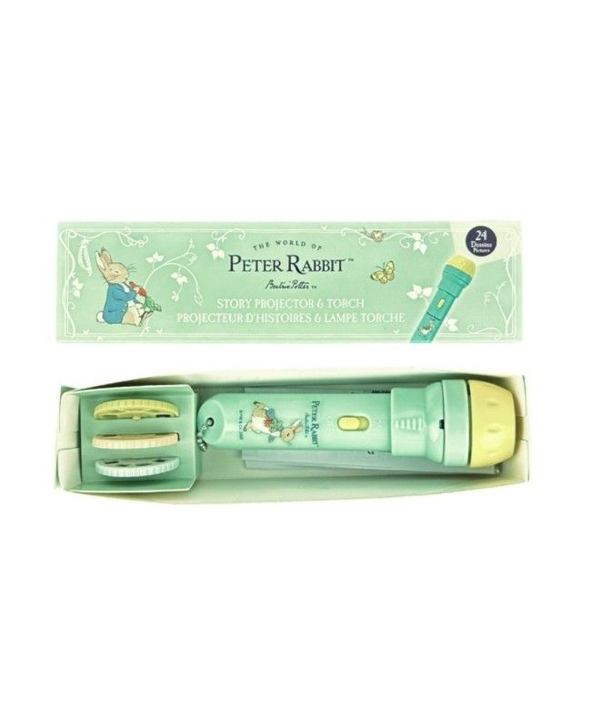 Découvrez la lampe à histoires de la collection Pierre lapin, une lampe torche qui projette des images en couleurs pour raconter de jolies histoires à votre enfant.