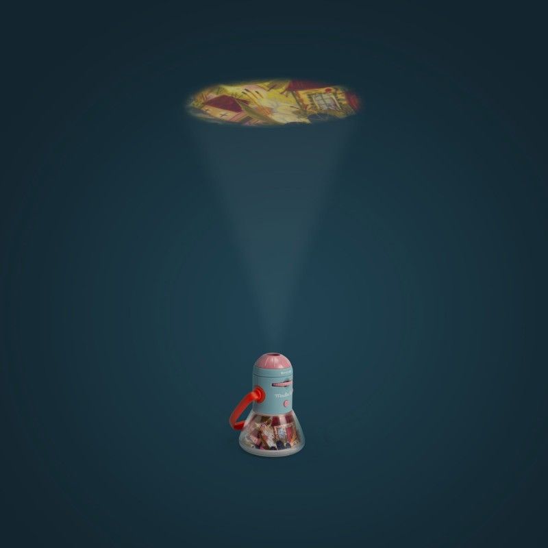 Une lanterne 3-en-1, à la fois projecteur d'histoires, d'ombres et veilleuse.