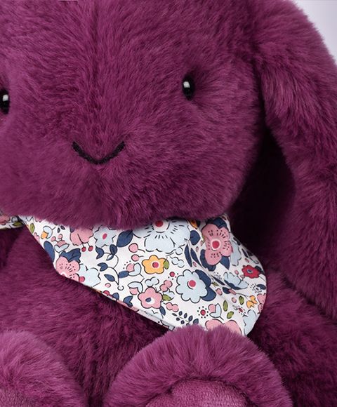La peluche Lapin Fleurette prune 35 cm séduit par son équilibre parfait entre douceur et présence. Son tissu agréable au toucher, ses longues oreilles souples et son bandana fleuri au style raffiné en font un compagnon plein de tendresse. Adaptée aux moments de détente comme aux instants de jeu, cette peluche trouve naturellement sa place dans une chambre d’enfant ou comme cadeau délicat et intemporel.