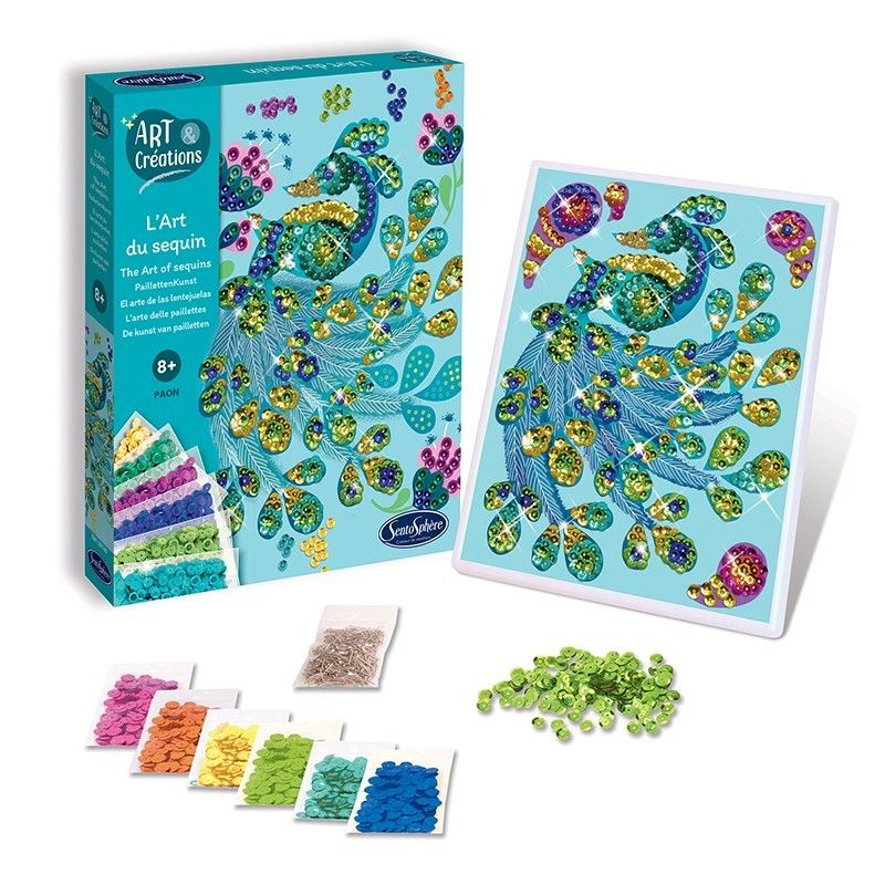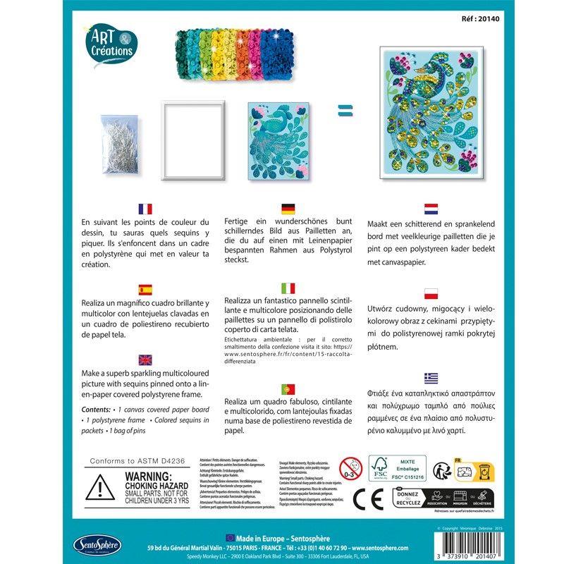 Faites briller ce paon de mille feux grâce aux 6 couleurs de sequins proposées dans ce magnifique coffret.