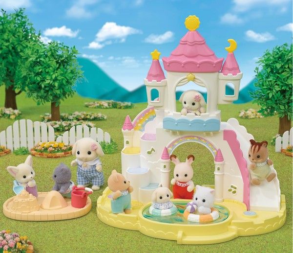 Les bébés Sylvanian pourront s'amuser comme des fous en construisant des châteaux de sable, en escaladant le vrai château jusqu'en haut puis en glissant le long du toboggan pour finir par un plongeon dans la piscine avec les bouées. La journée promet d'être amusante et riche en émotions !