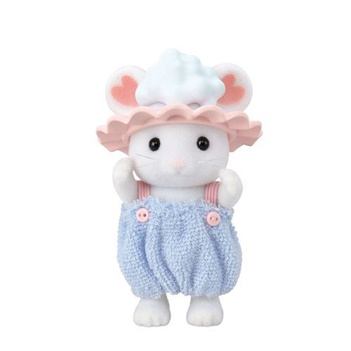 Ce set Le bain des frères Souris Marshmallow des Sylvanian families contient le bébé et le frère Souris Marshmallow ainsi que des accessoires pour le bain. Ils sont articulés et habillés avec soin. Leurs vêtements peuvent être enlevés et remis à loisir.