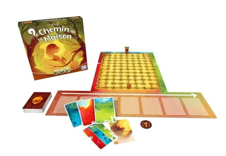 - Contenu : 1 plateau Forêt en 4 parties, 3 tuiles Forêt recto verso, 1 Maison à assembler, 1 pion Pirouette, 1 pion Premier joueur, 1 plateau Déplacement, 40 cartes Déplacement et 1 livret de règles.