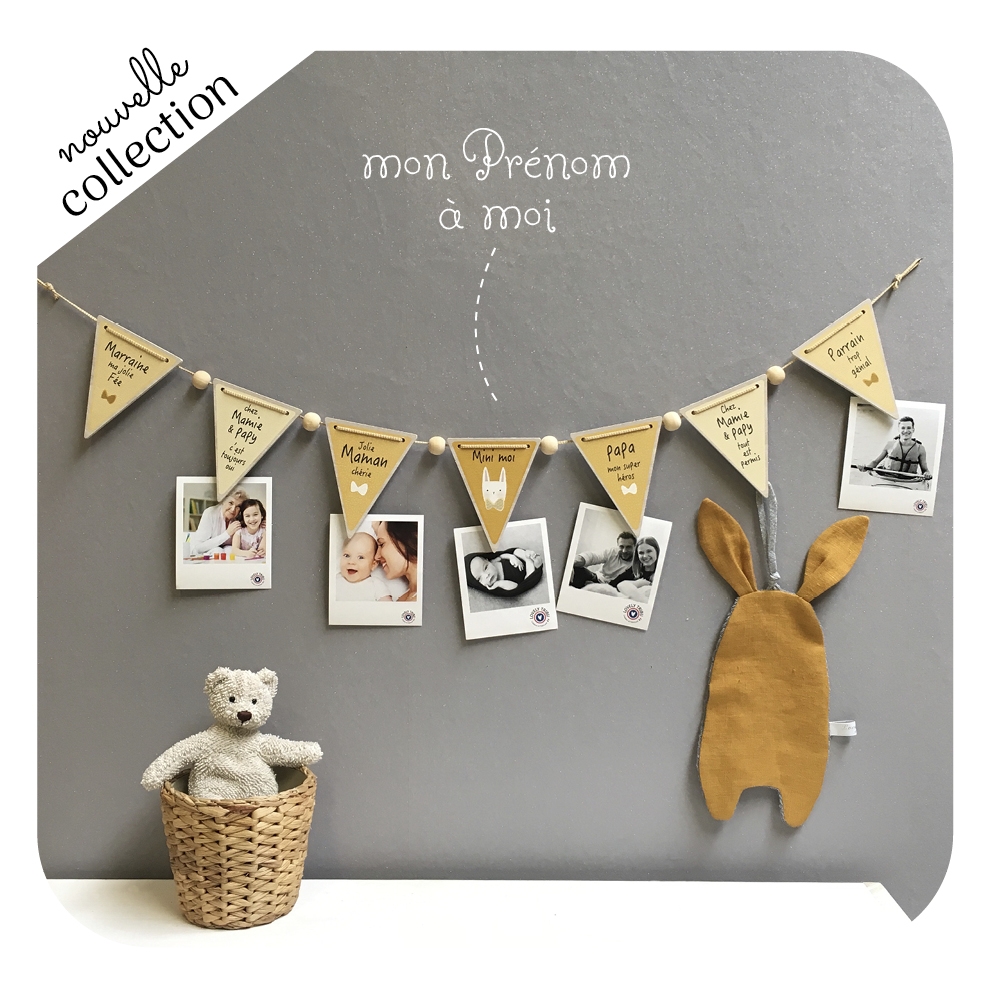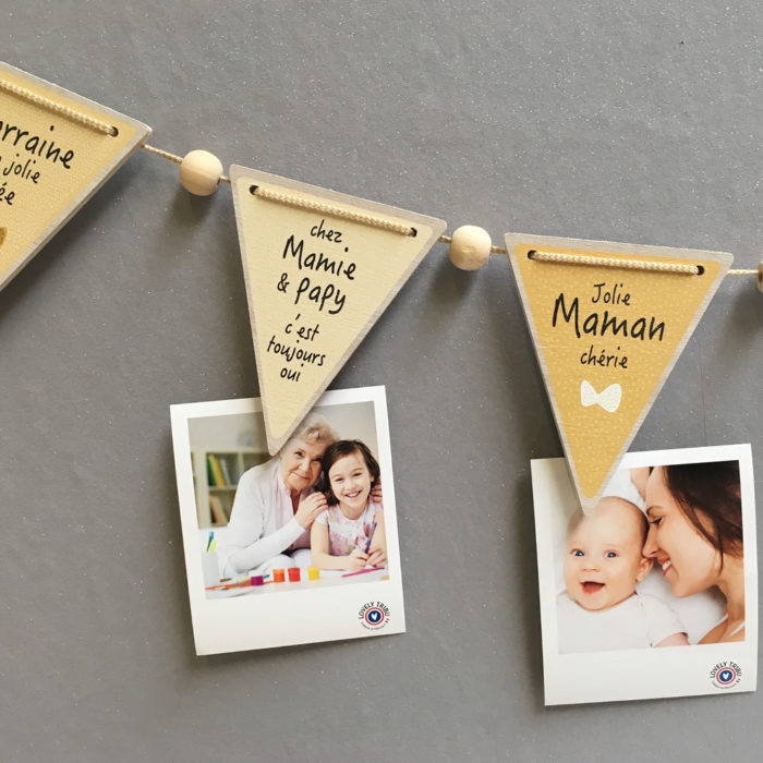 Accrochez les plus beaux clichés familiaux sur le Fanion porte-photos joliment illustré de Lovely tribu!