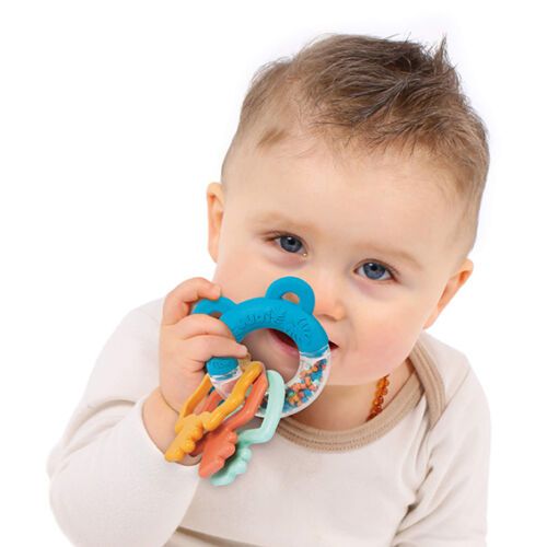 Les 3 clés de dentition texturées facilitent la prise en main du hochet.