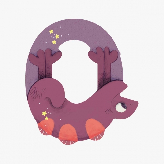 Lettre O en bois, illustrée avec un caméléon pour décorer la chambre de bébé ou composer un joli abécédaire. Lettre facile à prendre en main pour se familiariser avec l'alphabet. Cette lettre se décline en 2 coloris (vert et violet).