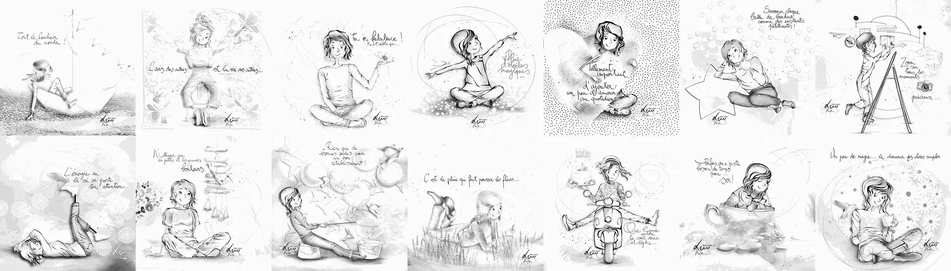 - 14 dessins différents, imprimés deux fois