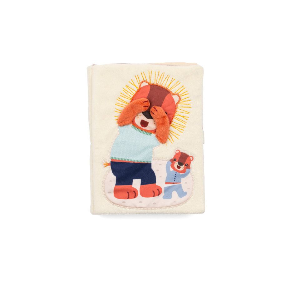 Avec ce livre d'activités en tissu, les enfants s'amusent à révéler les yeux des animaux derrière leur cachette.