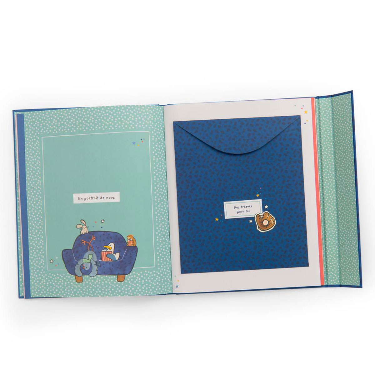 Un grand livre avec une fermeture aimantée. De son premier regard à ses premières découvertes, racontez et conservez les premiers souvenirs de votre enfant dans son livre de naissance.