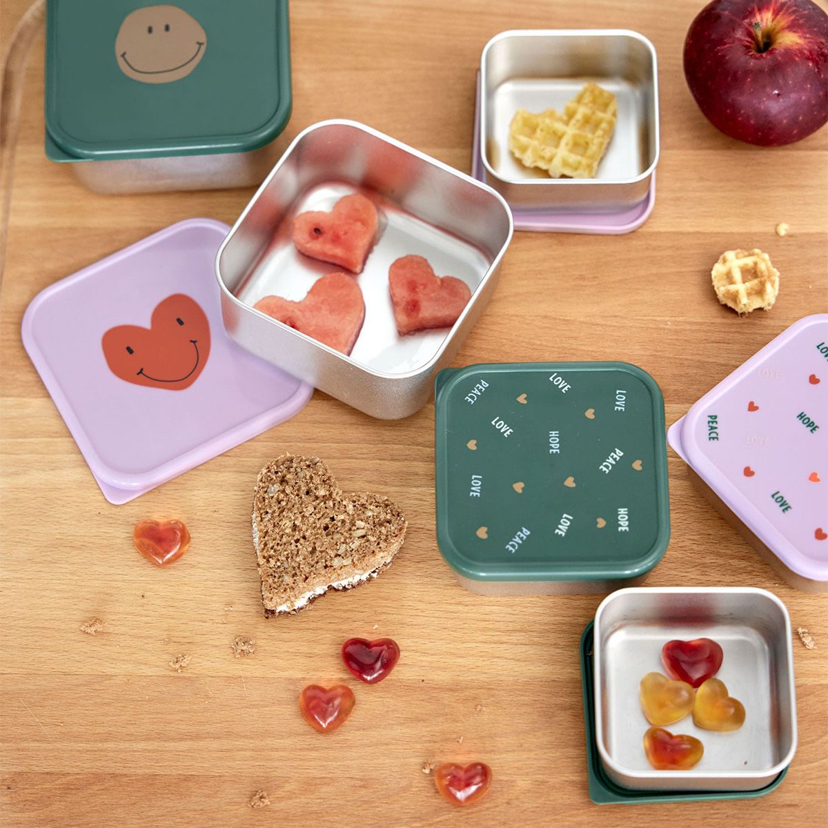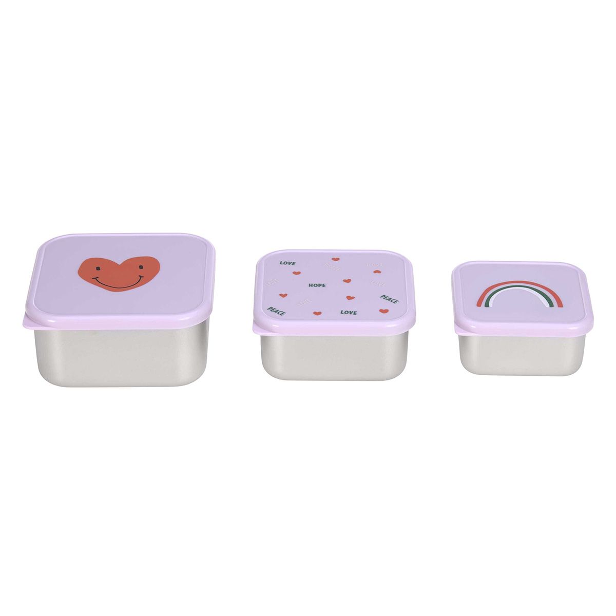 Lot de 3 boites à goûter inox - Happy Rascals coeur lavande