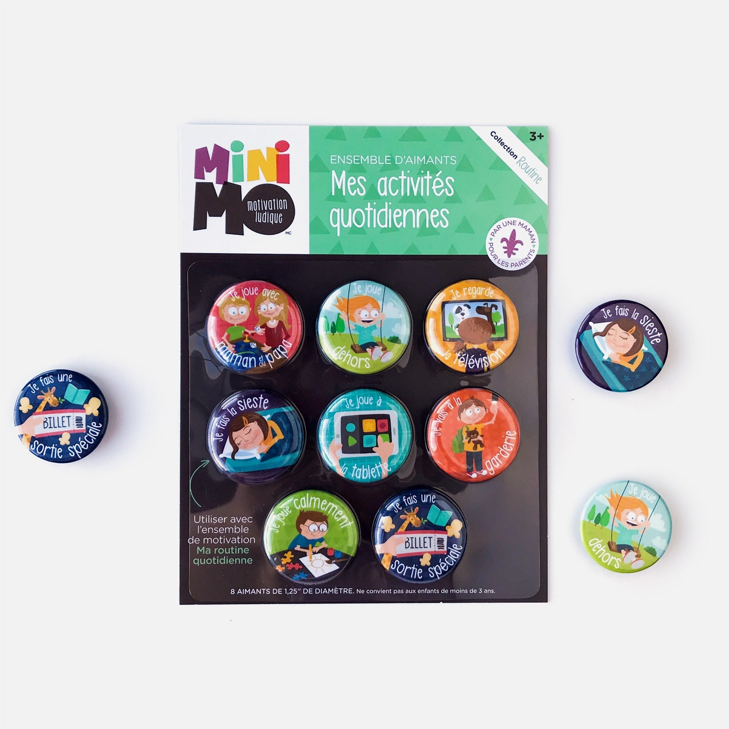Ce lot de 12 aimants est un outil pratique et ludique qui rend la routine beaucoup plus amusante pour toute la famille. Planifiez ensemble les périodes de jeu, les siestes, les activités spéciales et même le moment de partir pour la garderie ! Impliquez votre enfant et laissez-le glisser l'aimant avec fierté lorsque l'activité est terminée ! L'outil parfait pour encourager l'autonomie et valoriser l'estime de soi des petits?