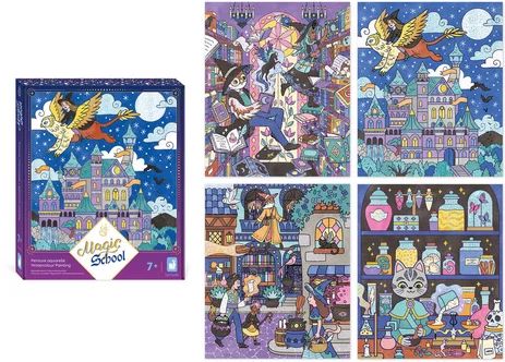 Ce kit créatif est composé de 4 tableaux représentant de jolies scènes magiques.