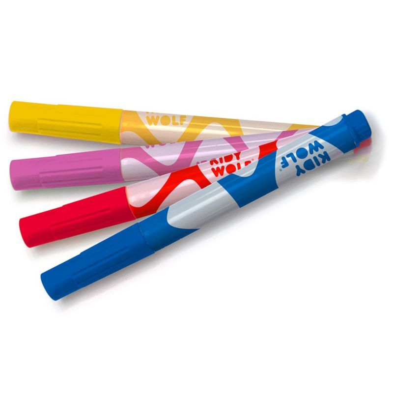 Retrouvez un set de 4 marqueurs néons de la marque Kidywolf à utiliser sur la partie tableau noir de la tablette Kidydraw Pro.