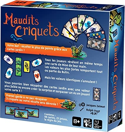 Au bout de 3 cartes légumes identiques dans sa réserve, on récupère 1 jeton point. Mais si on accumule 3 criquets, tous les légumes sont dévorés!