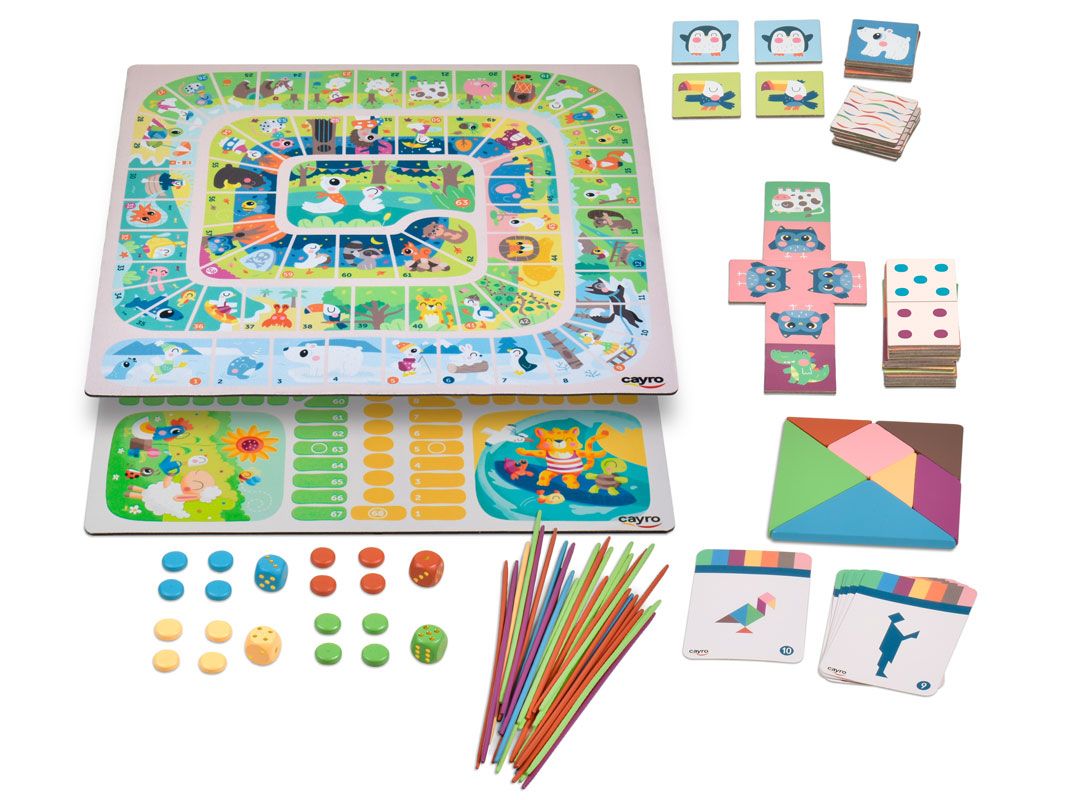6 jeux classiques pour toute la famille : L'oie, les Petits Chevaux, le Tangram, le Mikado, les Dominos et le Mémory. Amusement, stratégie et apprentissage réunis dans une seule boîte métallique !