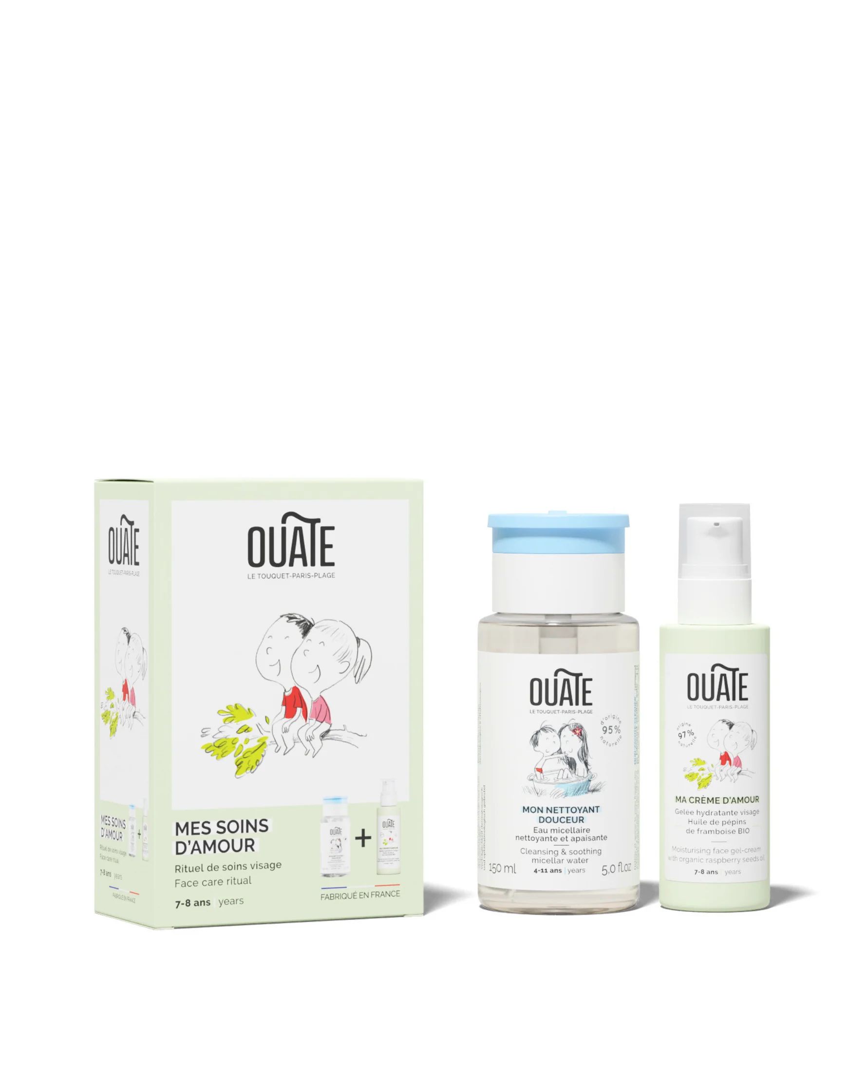 Ce coffret découverte est le cadeau idéal à offrir aux enfants de 7 à 8 ans. Il contient l'essentiel des soins OUATE pour nettoyer, hydrater et protéger la peau délicate de leur visage.