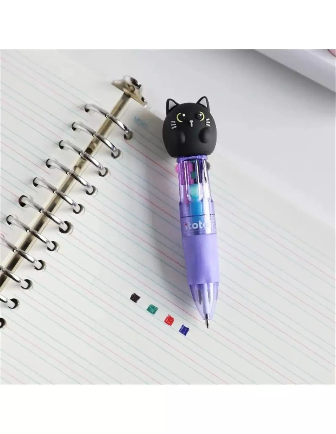 Ajoutez une touche de douceur à votre papeterie avec les Mini bics à 4 Couleurs au design de chat (gris ou noir)