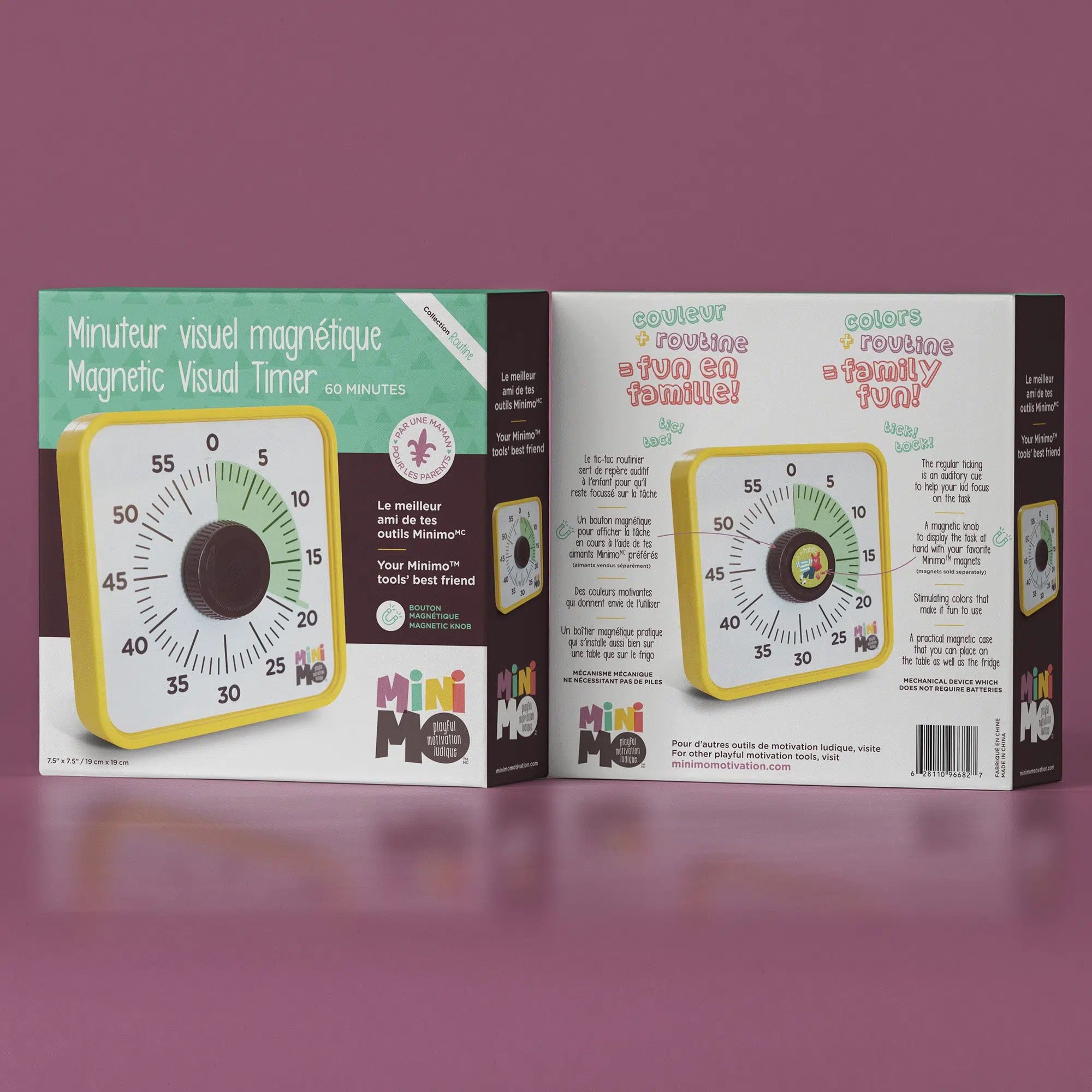 Le Minuteur visuel magnétique Minimo a un super pouvoir ! Grâce à son bouton magnétique unique, vous pourrez afficher facilement la tâche en cours et ainsi fournir à votre tout-petit un repère visuel facile à comprendre. C'est l'accessoire idéal pour offrir motivation et plaisir à votre enfant pour accomplir ses tâches.