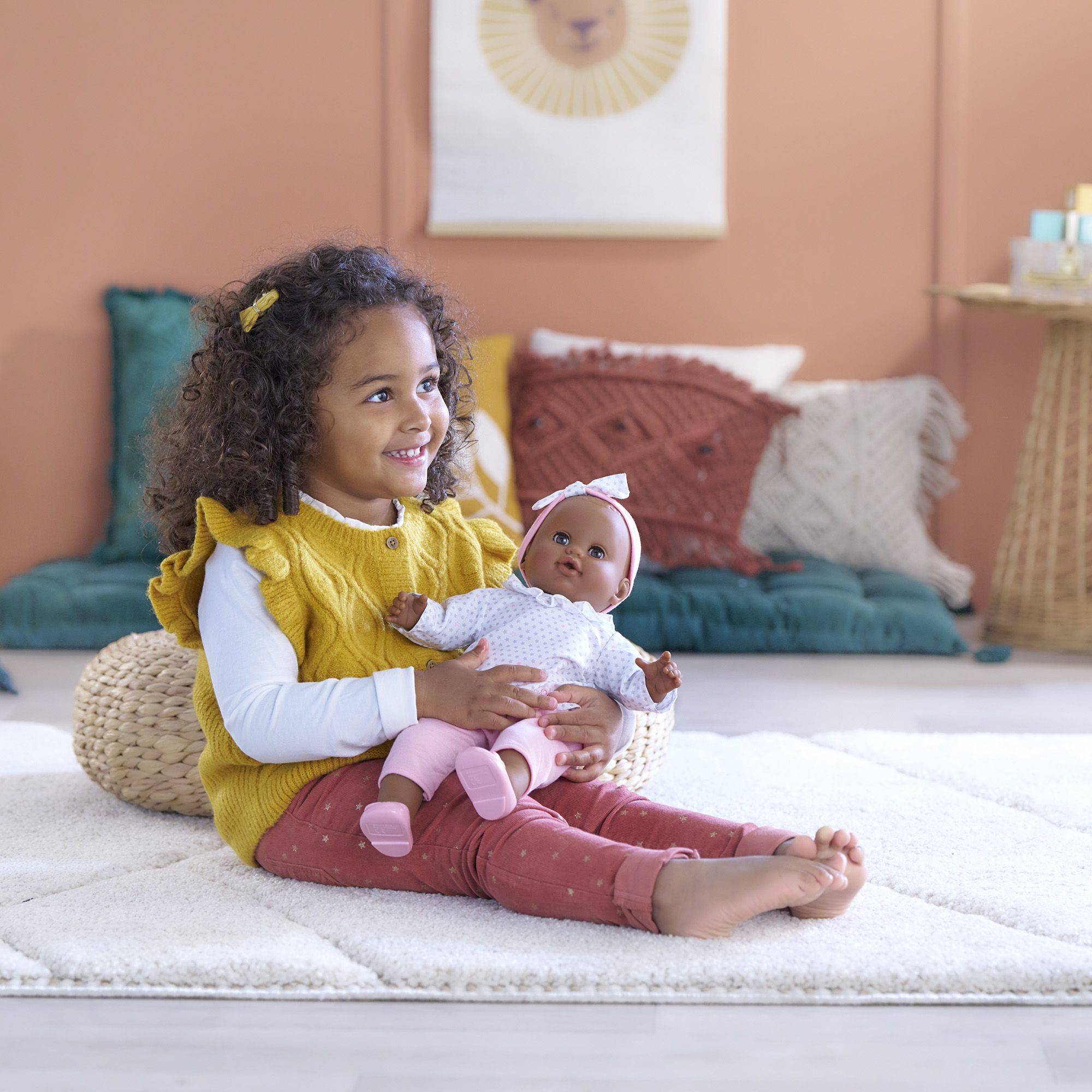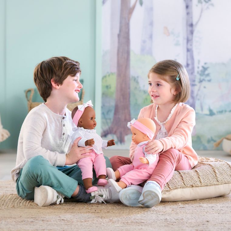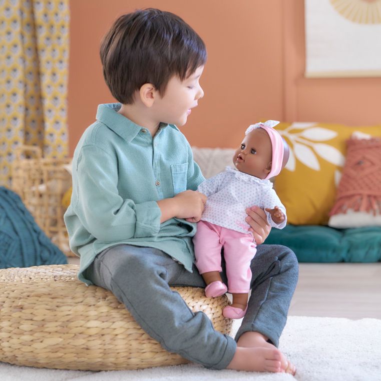 Elle mesure 36 cm, une taille parfaitement adaptée aux petits bras de l'enfant pour la câliner, la materner et reproduire les gestes qui font devenir grand.