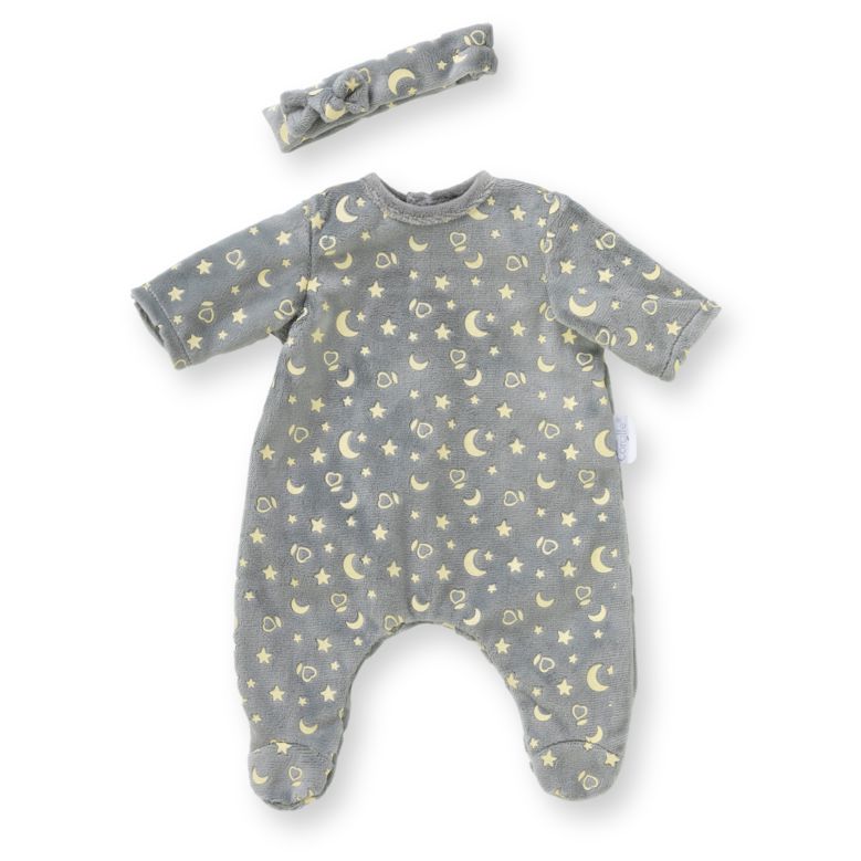 Le marchand de sable est passé, bébé va passer la nuit à faire de jolis et doux rêves ! Le Pyjama Brille dans la Nuit, avec son bandeau, est le vêtement idéal pour les grands poupons de 36 cm.
