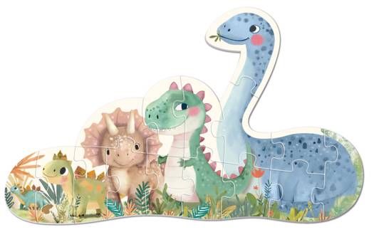 Comprend 21 grandes pièces robustes pour construire 5 puzzles progressifs qui, une fois terminés, forment un puzzle final de 61 x 33 cm. Les enfants peuvent assembler d'adorables dinosaures.