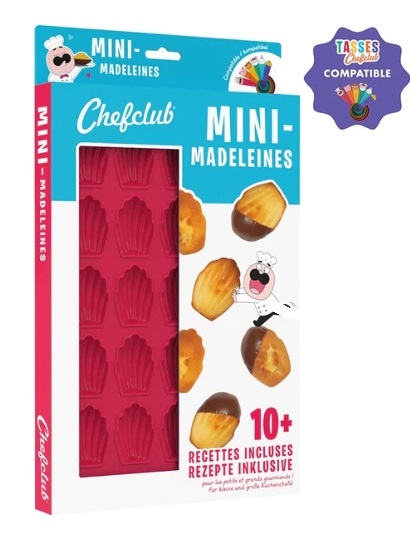 Trouvez à l'intérieur de ce coffret un QR Code pour télécharger l'e-book madeleine. Vous allez vous régaler avec les recettes créatives à faire avec les moules Chefclub.