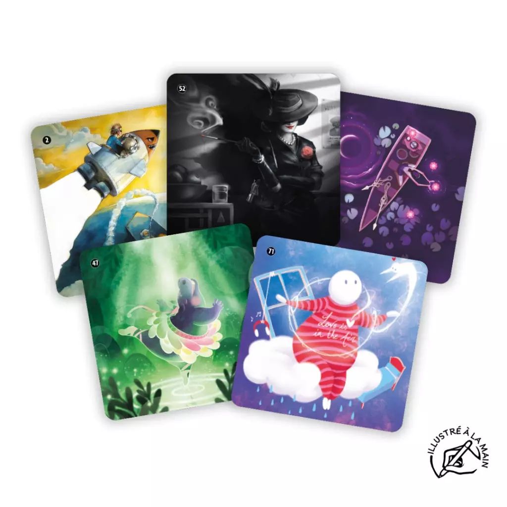 - Contenu : 89 illustrations faites à la main par 33 artistes, 52 cartes Mot et 36 gemmes